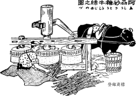 Until 1949 or 1950, sugar cane was squeezed by stone roller and pulled and turned by cows. Nowadays this process is conducted by machines.